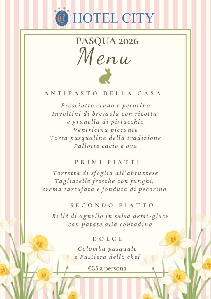 Quest’anno, lasciate che a cucinare per voi siamo noi. Il Pranzo di Pasqua all’Hotel City è l’occasione perfetta per riunire la famiglia e gli amici in un’atmosfera raffinata e conviviale, a pochi passi dal mare.